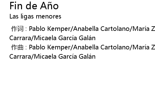 | [00:00.000] | 作曲 : Pablo Kemper/Anabella Cartolano/María Zamtlejfer/Nina Carrara/Micaela García Galán |