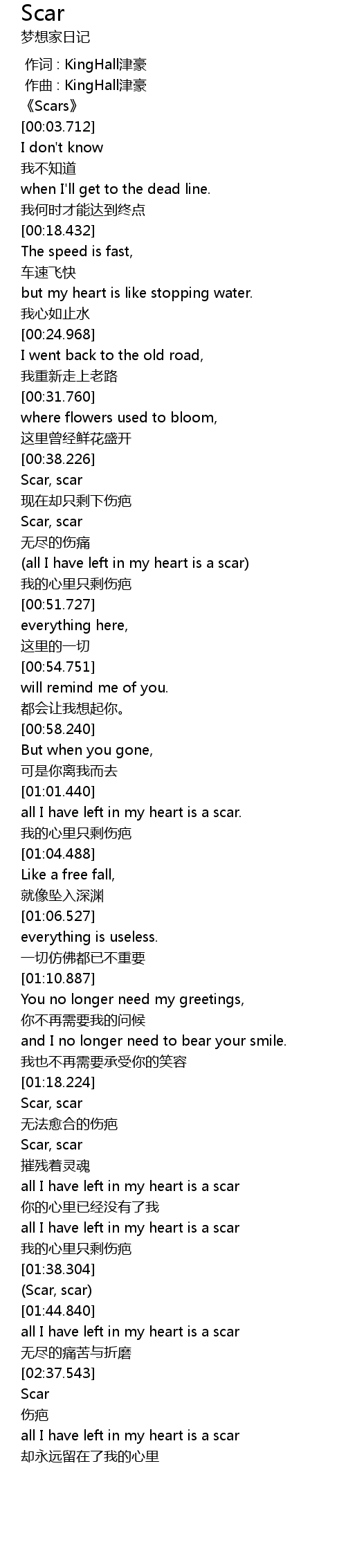 | [00:48.920] | (all I have left in my heart is a scar) |