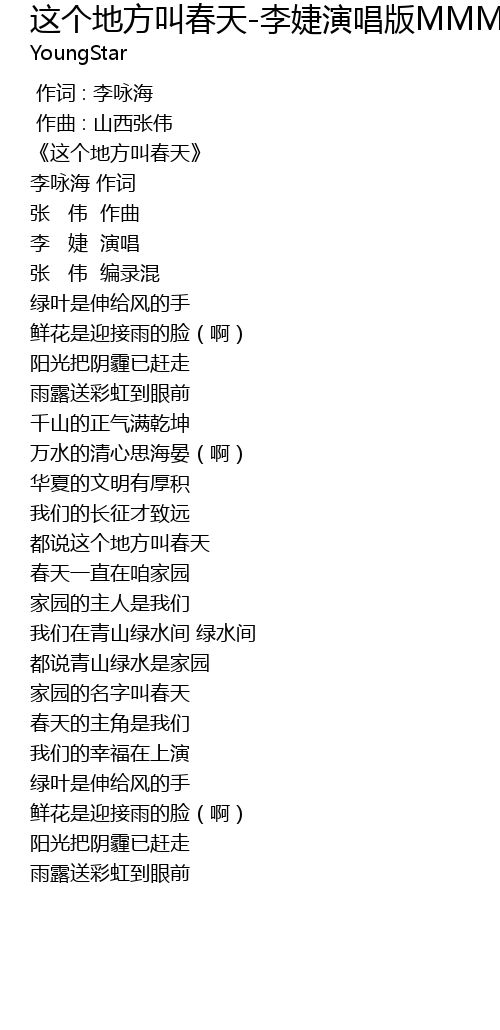 | Song | 这个地方叫春天-李婕演唱版MMM |