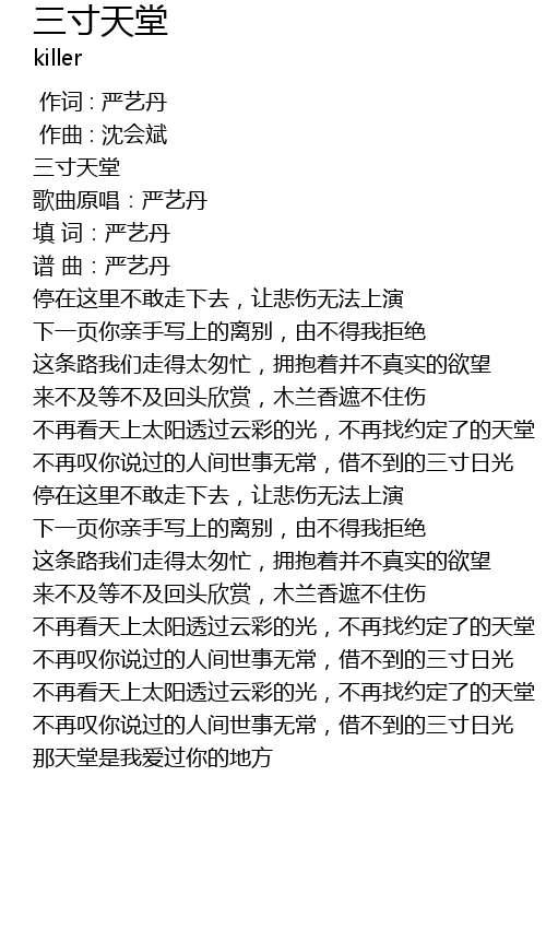 | [00:32.690] | 三寸天堂 |