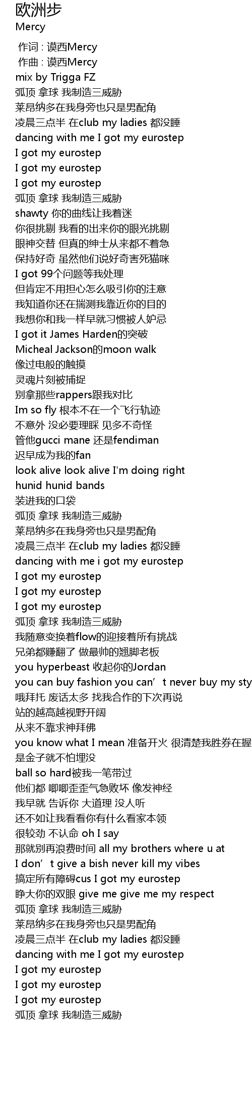 | [02:34.127] | gao ding suo you zhang ai cus I got my eurostep |