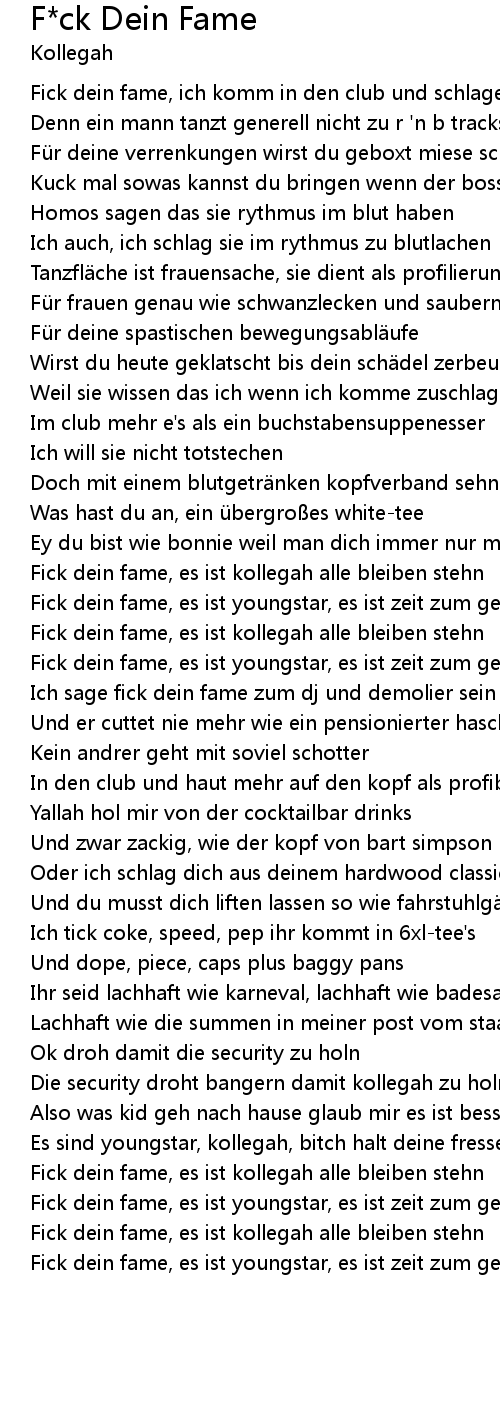 | Fick dein fame, ich komm in den club und schlage dich weg | |