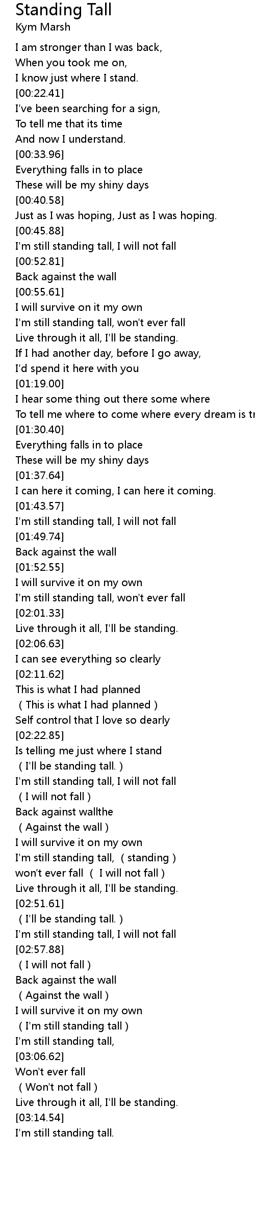 | [00:58.47] | I'm still standing tall, won't ever fall |