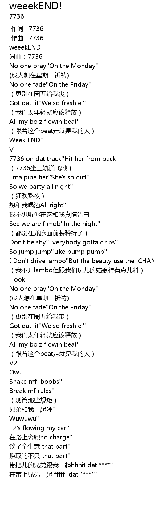 | [00:43.907] | Got dat lit''We so fresh ei'' |