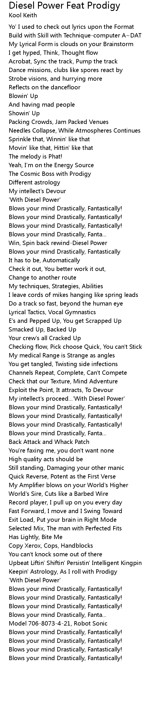 My intellect's proceed...'With Diesel Power' |