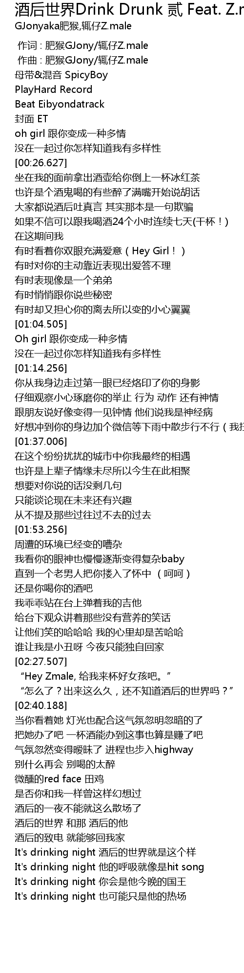 | Song | 酒后世界Drink Drunk 贰 Feat. Z.male |