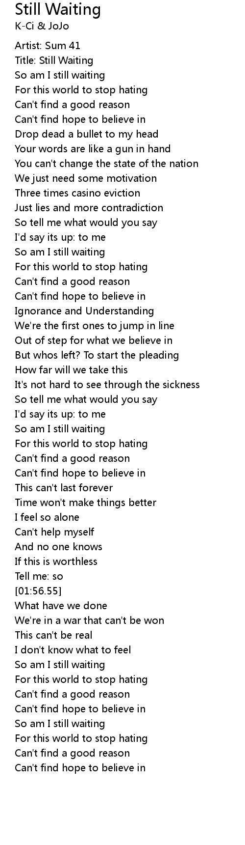 So am I still waiting |