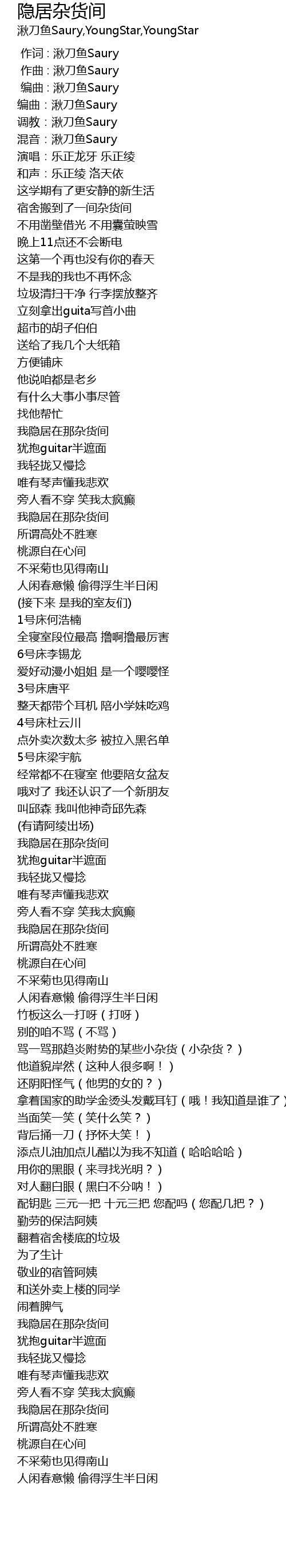| [02:34.44] | 我隐居在那杂货间 |