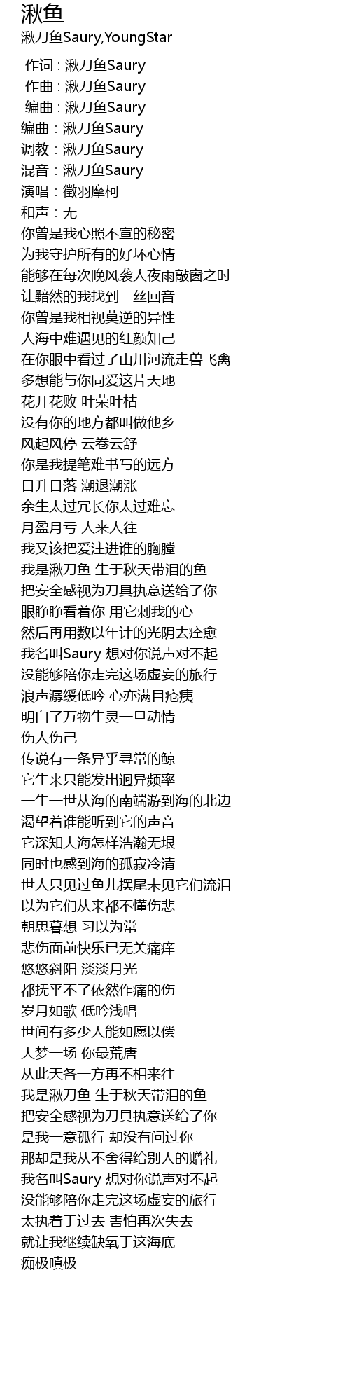 | [01:33.61] | 我是湫刀鱼 生于秋天带泪的鱼 |