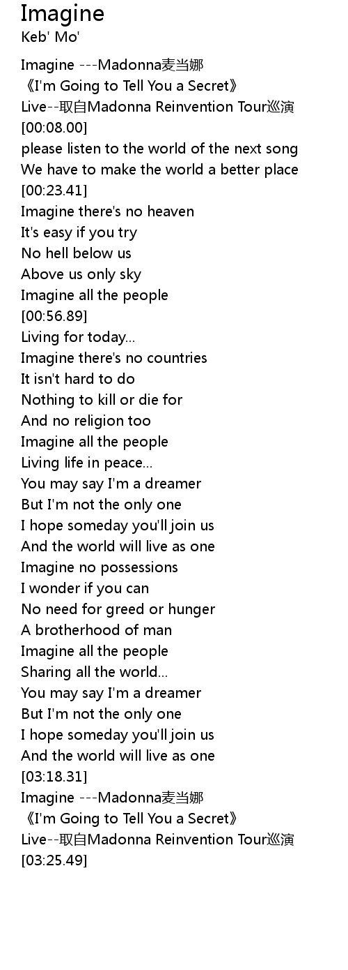 | [00:02.53] | Imagine ---Madonna麦当娜 |