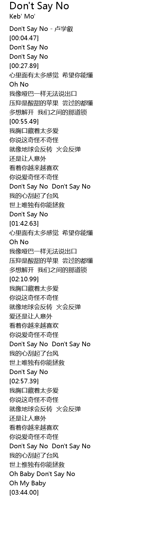 | [03:19.71] | Don' t Say No Don' t Say No |