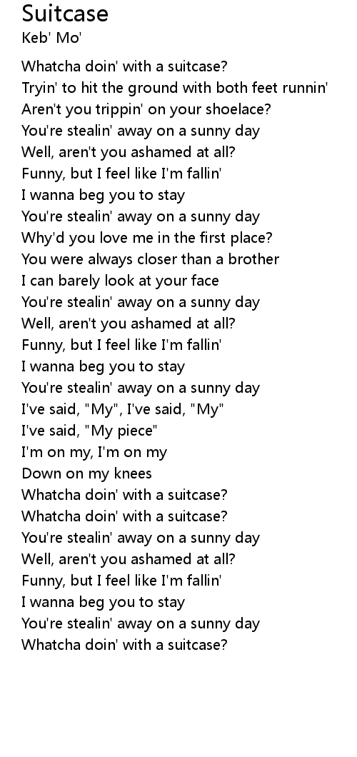 | [00:17.34] | Whatcha doin' with a suitcase? |