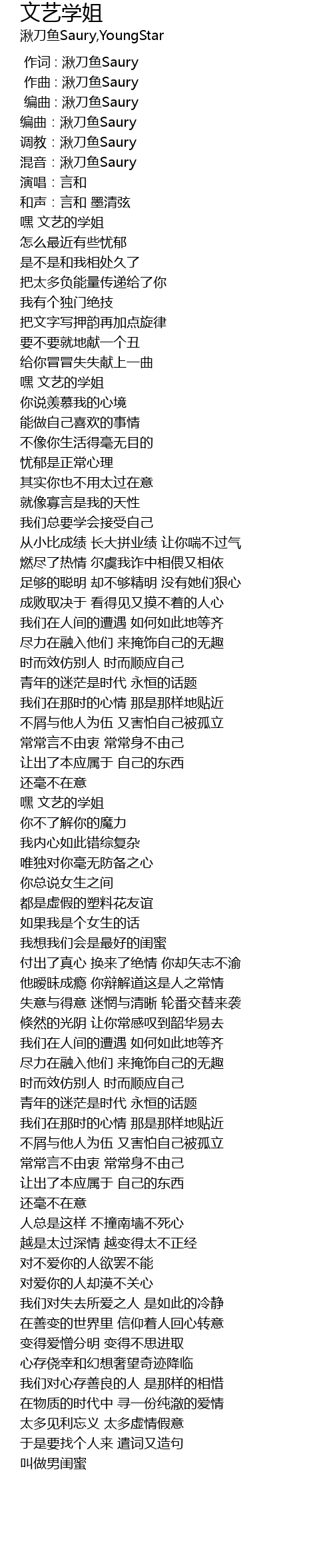 | [00:06.62] | 编曲:湫刀鱼Saury |