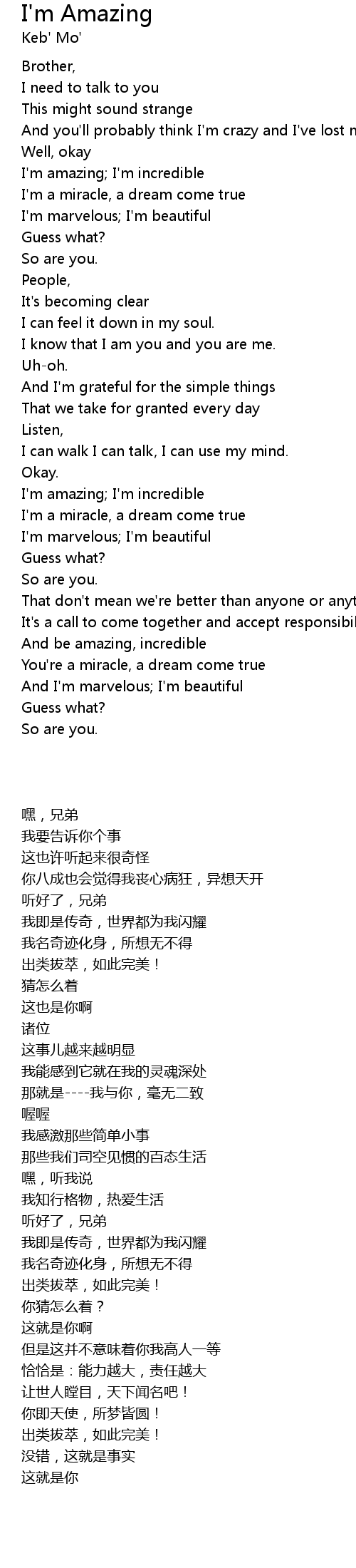 I'm amazing; I'm incredible |