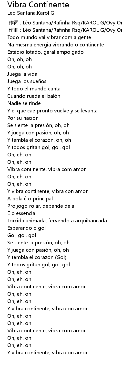 | [00:00.000] | zuò cí : Lé o Santana Rafinha Rsq KAROL G Ovy On The Drums |