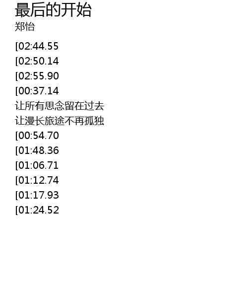 | [03:08.49][02:44.55][00:19.79][01:30.78] | 让我拥有最后的开始 |