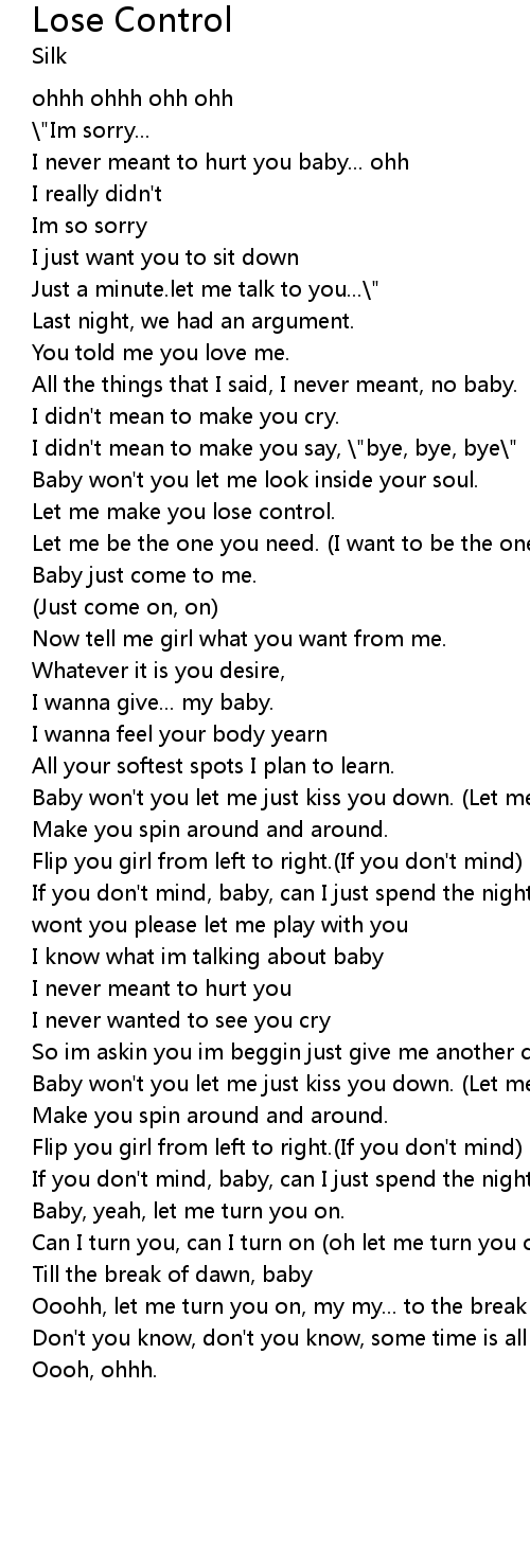 Ooohh, let me turn you on, my my... to the break of dawn baby. |