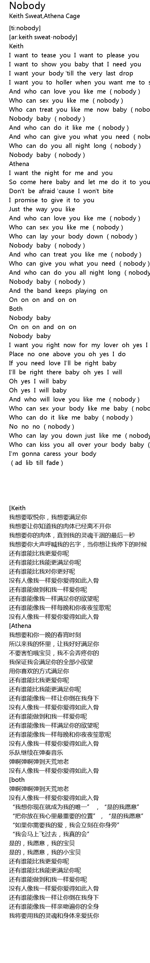 | [00:46.701] | Who can treat you like me now baby nobody |