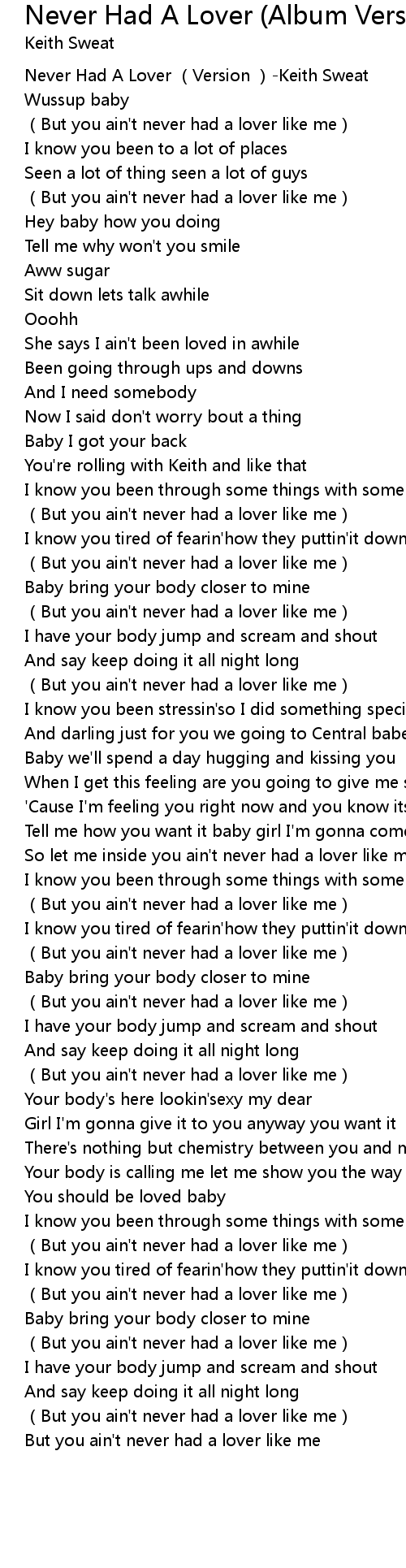 | [00:00.00] | Never Had A Lover Version Keith Sweat |