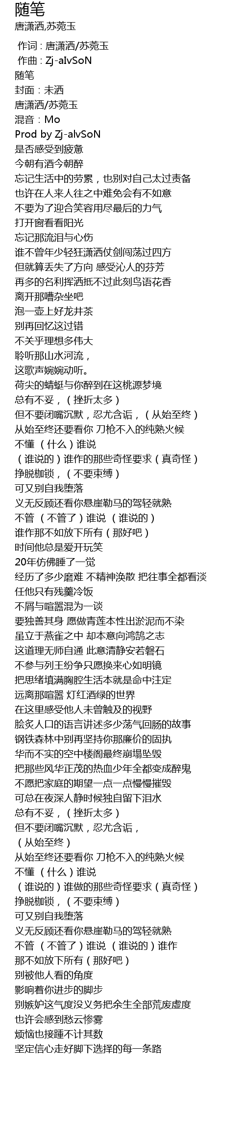 | [00:00.000] | 作词 : 唐潇洒/苏菀玉 |