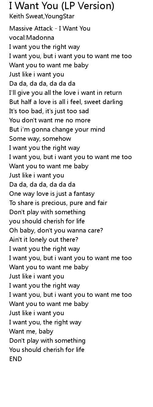 | [01:16.81] | I want you, but i want you to want me too |