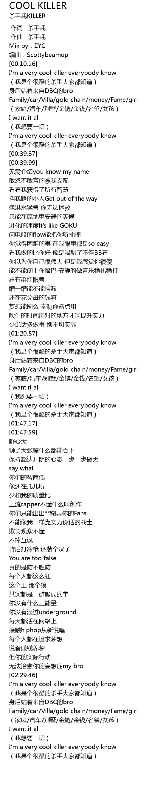 | [02:33.89] | wǒ shì gè hěn kù de shā shǒu dà jiā dōu zhī dào |