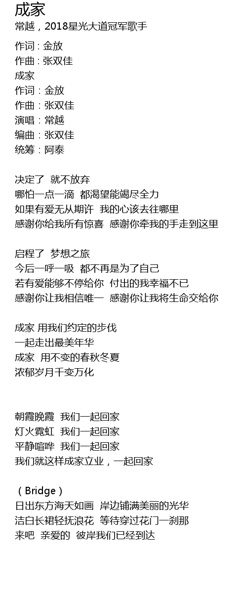 | wǒ men jiù zhè yàng chéng jiā lì yè, yì qǐ huí jiā | |