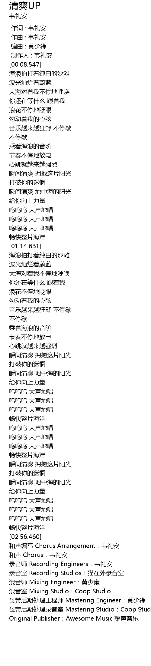 | [02:58.275] | 和声编写 Chorus Arrangement:韦礼安 |