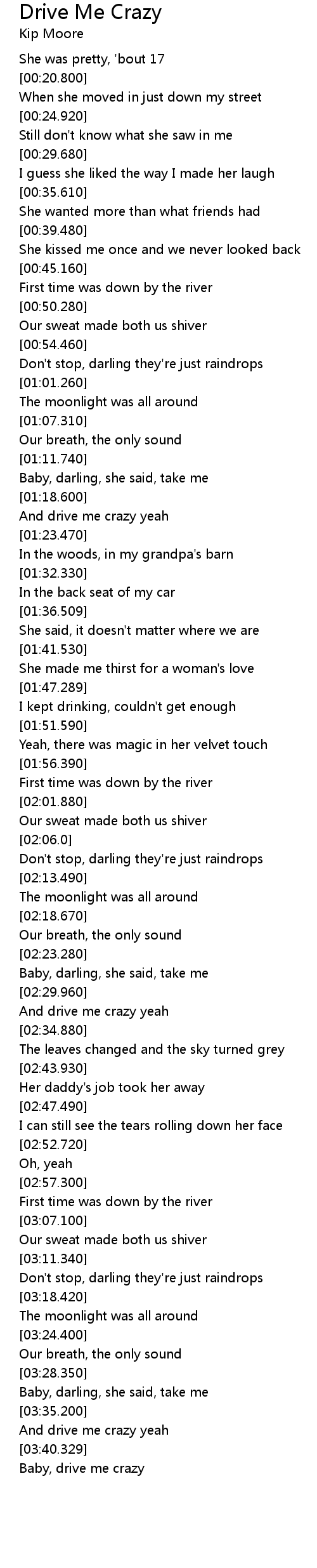 | [00:55.330] | Don' t stop, darling they' re just raindrops |