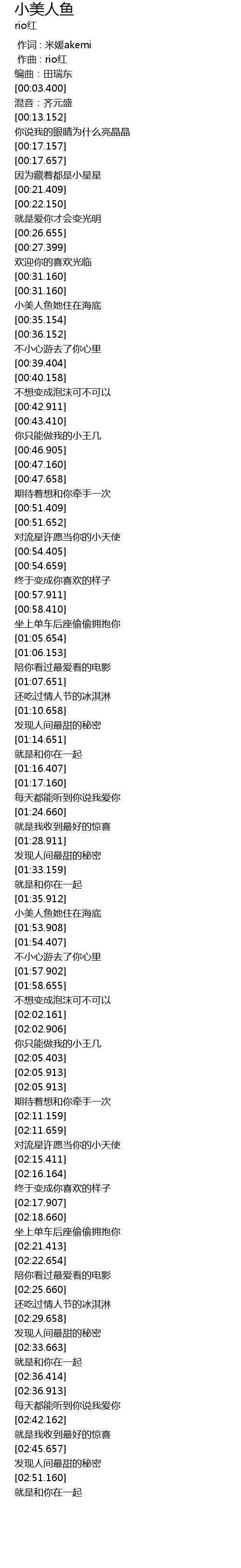 [01:52.910] xiǎo měi rén yú tā zhù zài hǎi dǐ