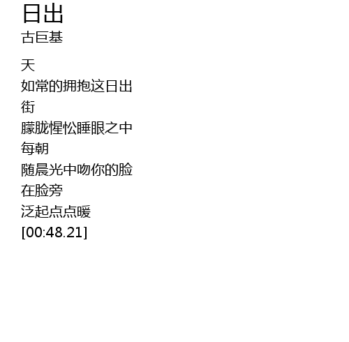 | [00:25.41] | 如常的拥抱这日出 |