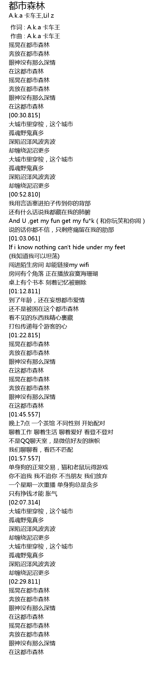 | [02:53.308] | 在这都市森林 |
