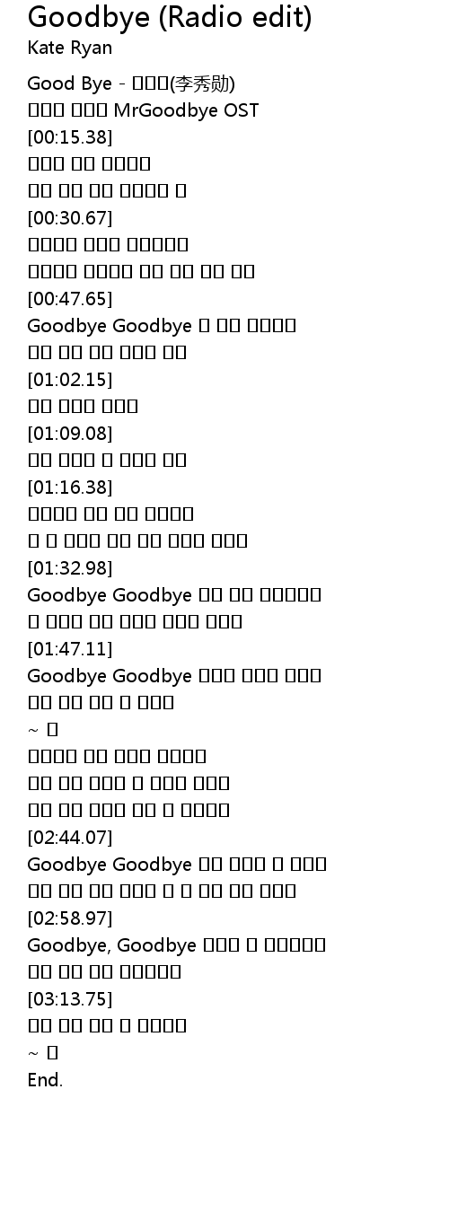| [02:44.29] | Goodbye Goodbye 다음 세상에 꼭 만나요 |