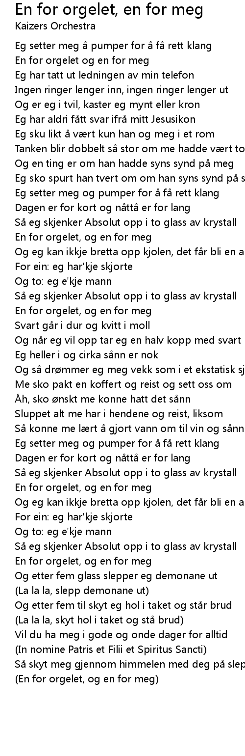 | Song | En for orgelet, en for meg |