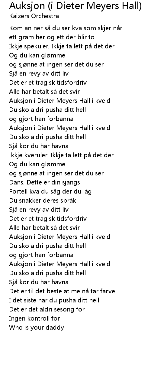 | Song | Auksjon (i Dieter Meyers Hall) |