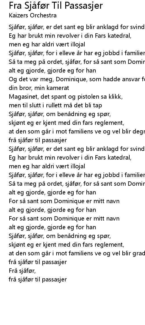 | Sjåfør, sjåfør, for i elleve år har eg jobbd i familiens ånd | |