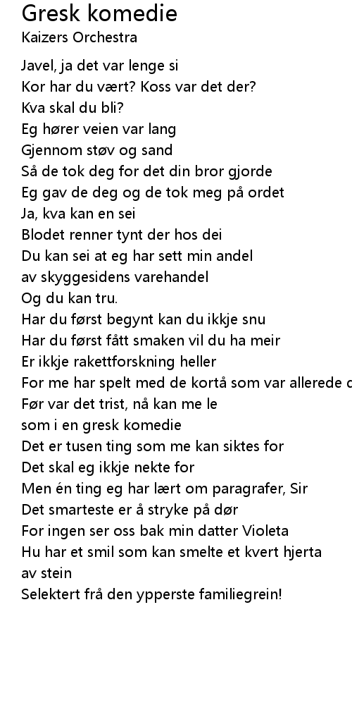 | Song | Gresk komedie |