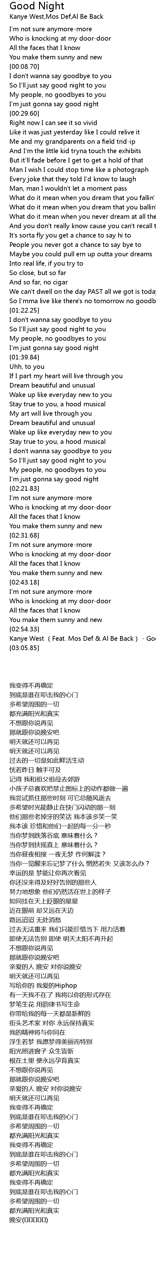 | [02:55.33] | Kanye West Feat. Mos Def Al Be Back Goodnight |