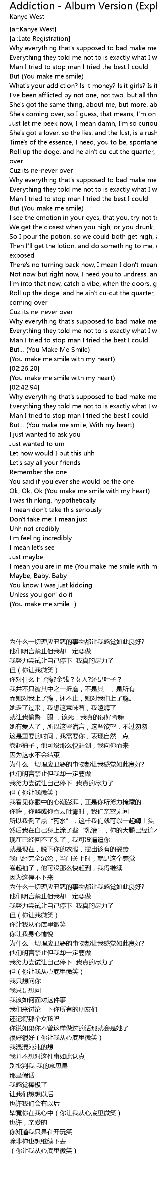 What's your addiction? Is it money? Is it girls? Is it weed? |