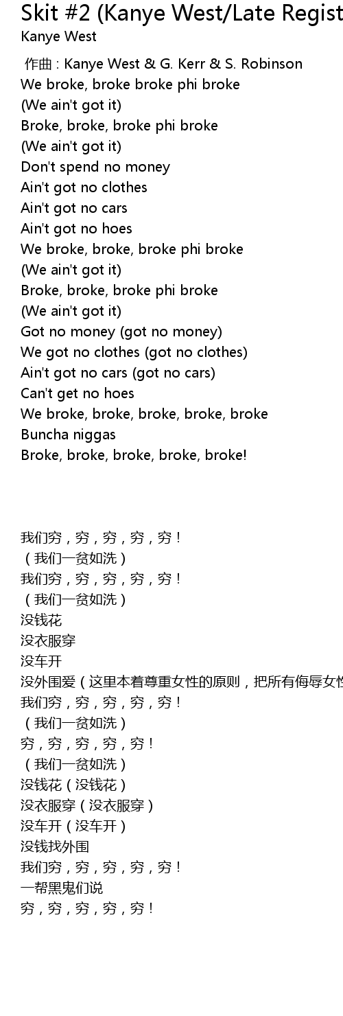 | [00:00.00] | 作曲 : Kanye West & G. Kerr & S. Robinson |