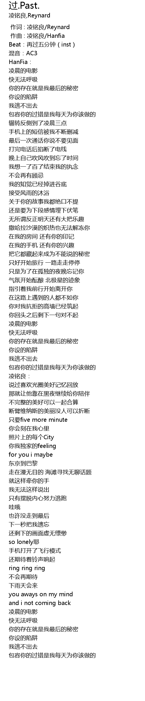 | [00:00.000] | 作词 : 凌铭良/Reynard |