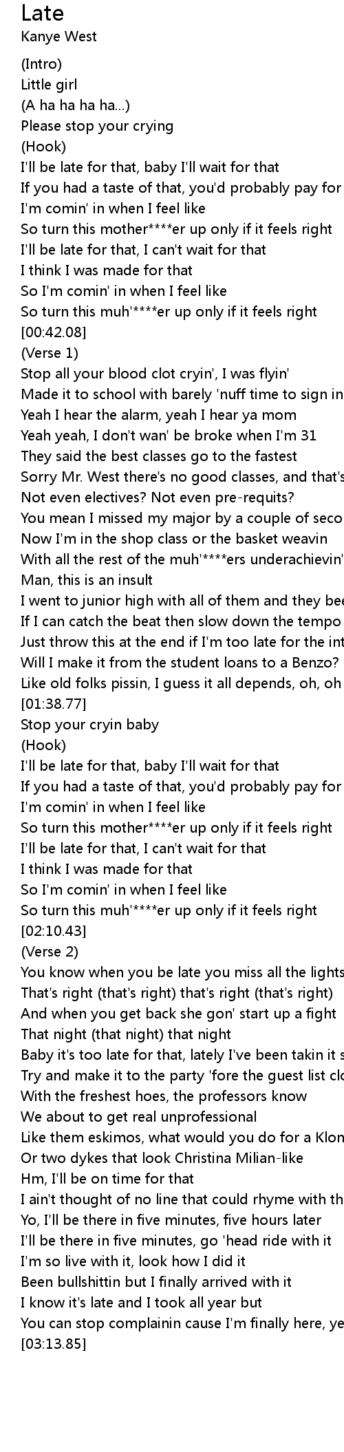 You know when you be late you miss all the lights |