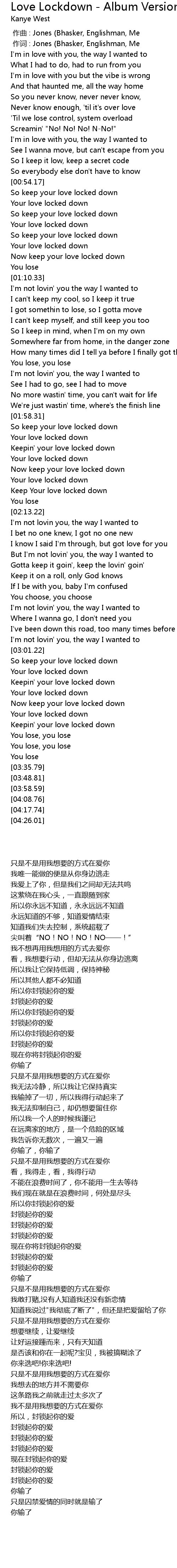 | Song | Love Lockdown - Album Version |