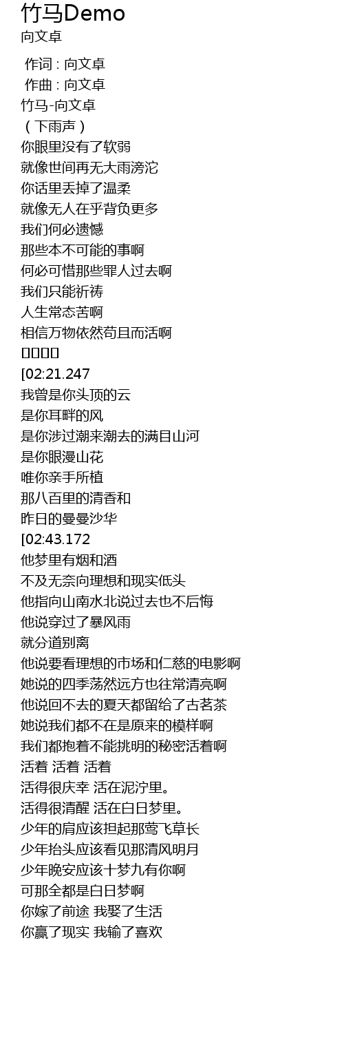 | [00:03.275] | zhu ma xiang wen zhuo |