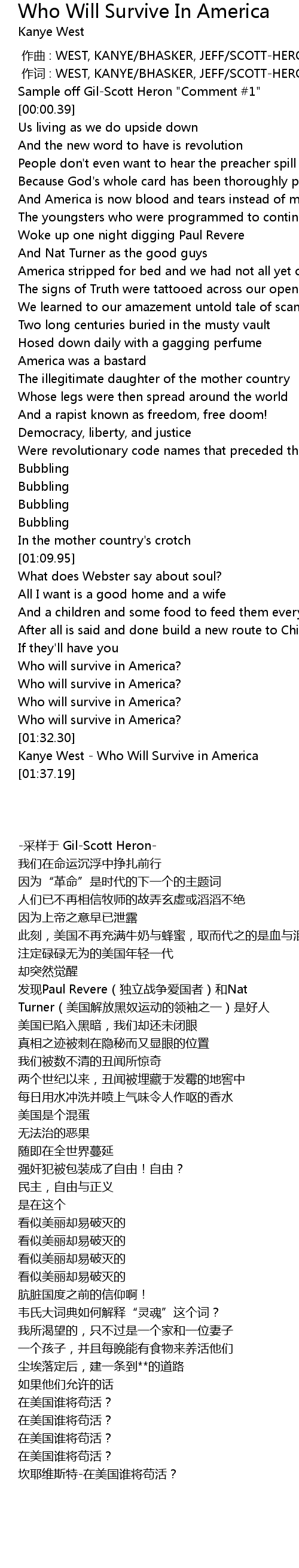 | [01:36.16] | Kanye West Who Will Survive in America |