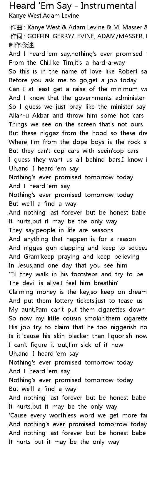 | Song | Heard 'Em Say - Instrumental |