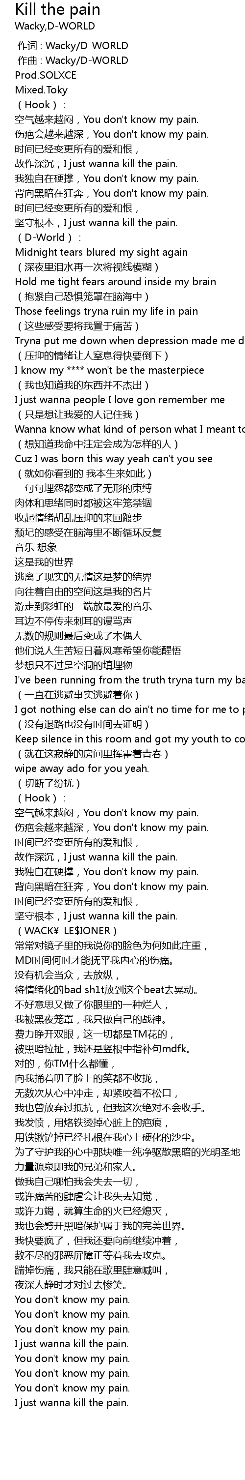 | [01:37.15] | 故作深沉,I just wanna kill the pain. |