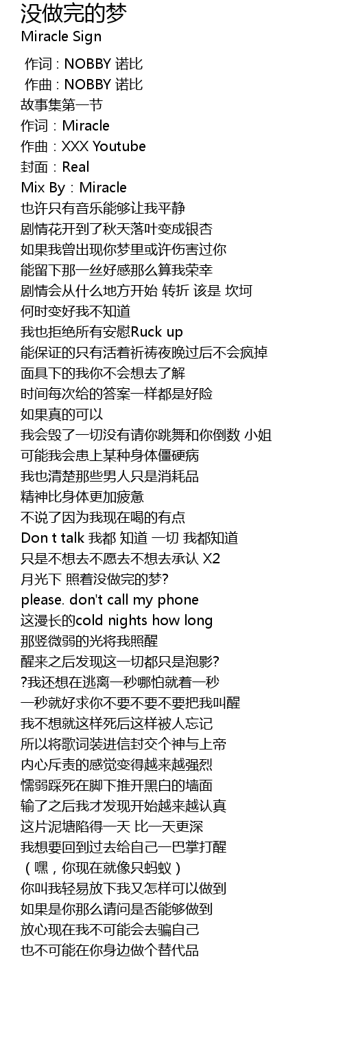 | [00:00.000] | 作词 : NOBBY 诺比 |
