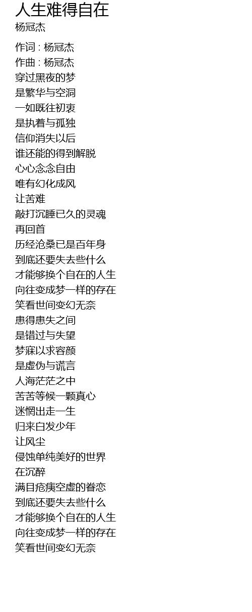 | 作词 : 杨冠杰 | |