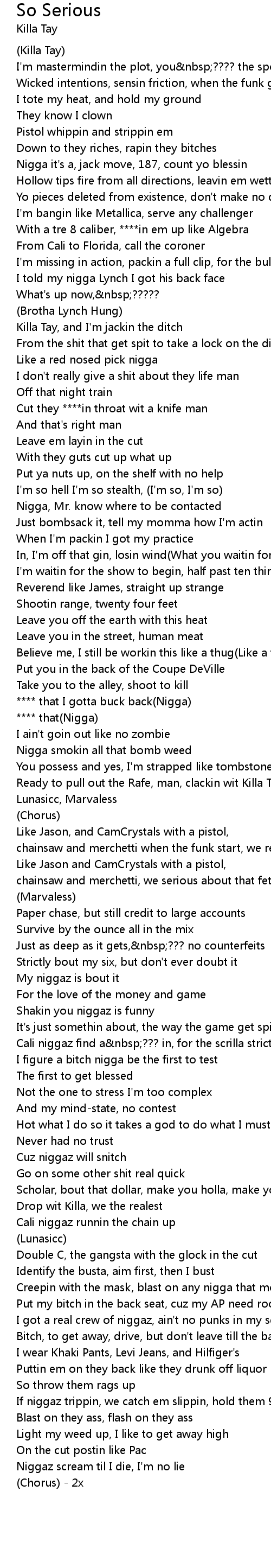Niggaz scream til I die, I'm no lie |